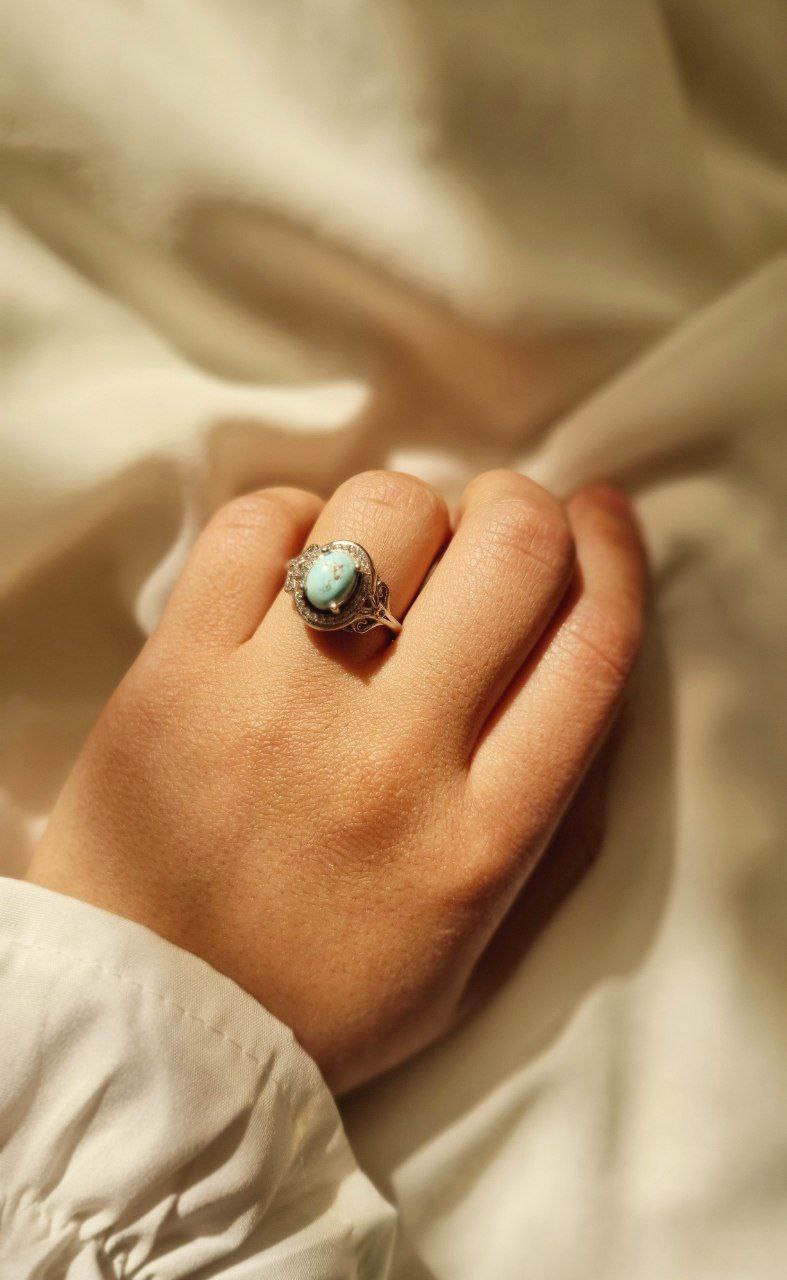 انگشتر زنانه نقره ۹۲۵ فیروزه نیشابور اصل رنگ ثابت