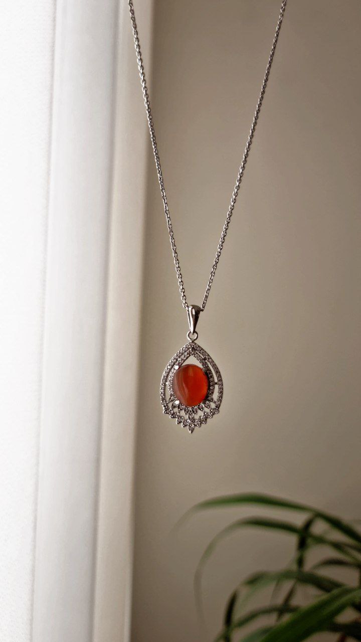 گردنبند نقره ۹۲۵ عقیق یمن پرتقالی مدل کلاسیک رنگ ثابت