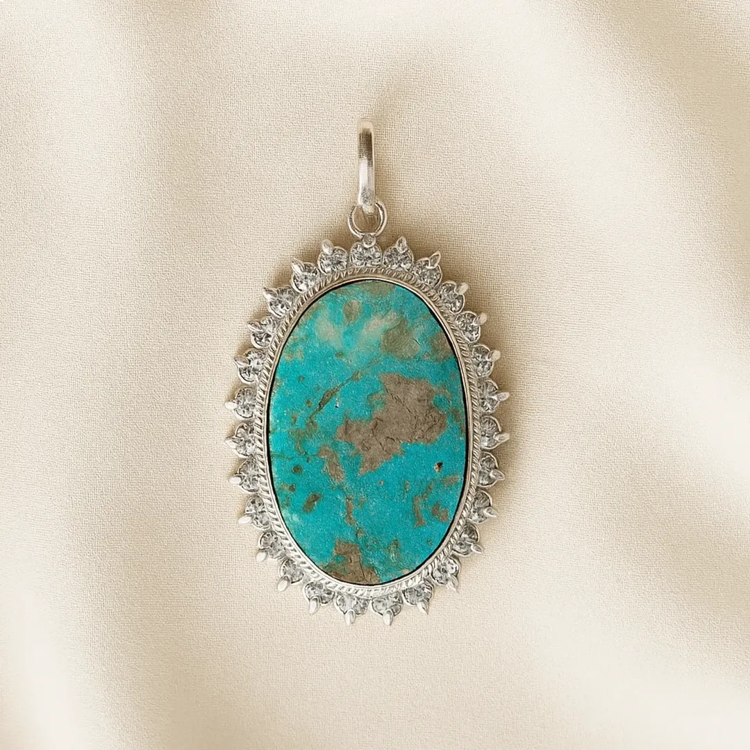 گردن آویز نقره با سنگ فیروزه نیشابور