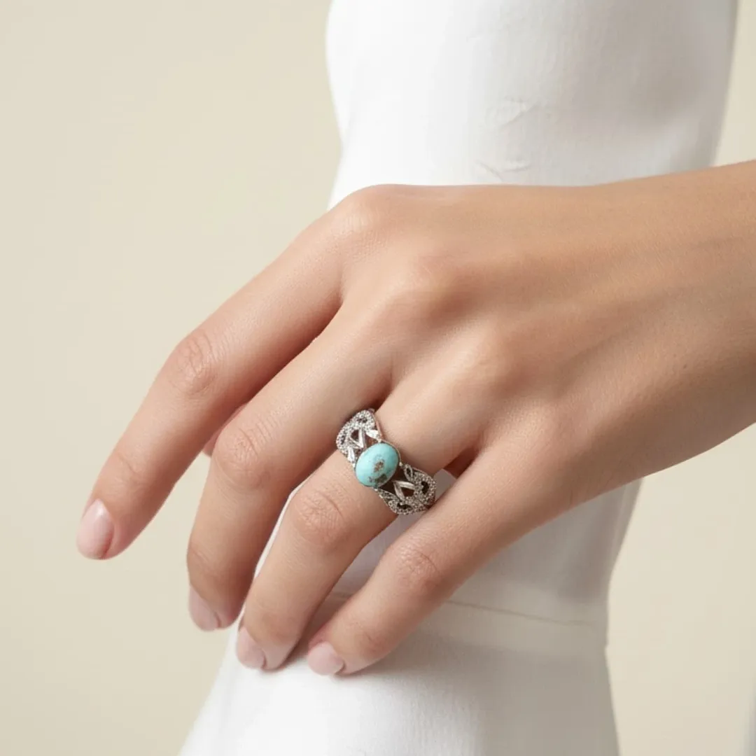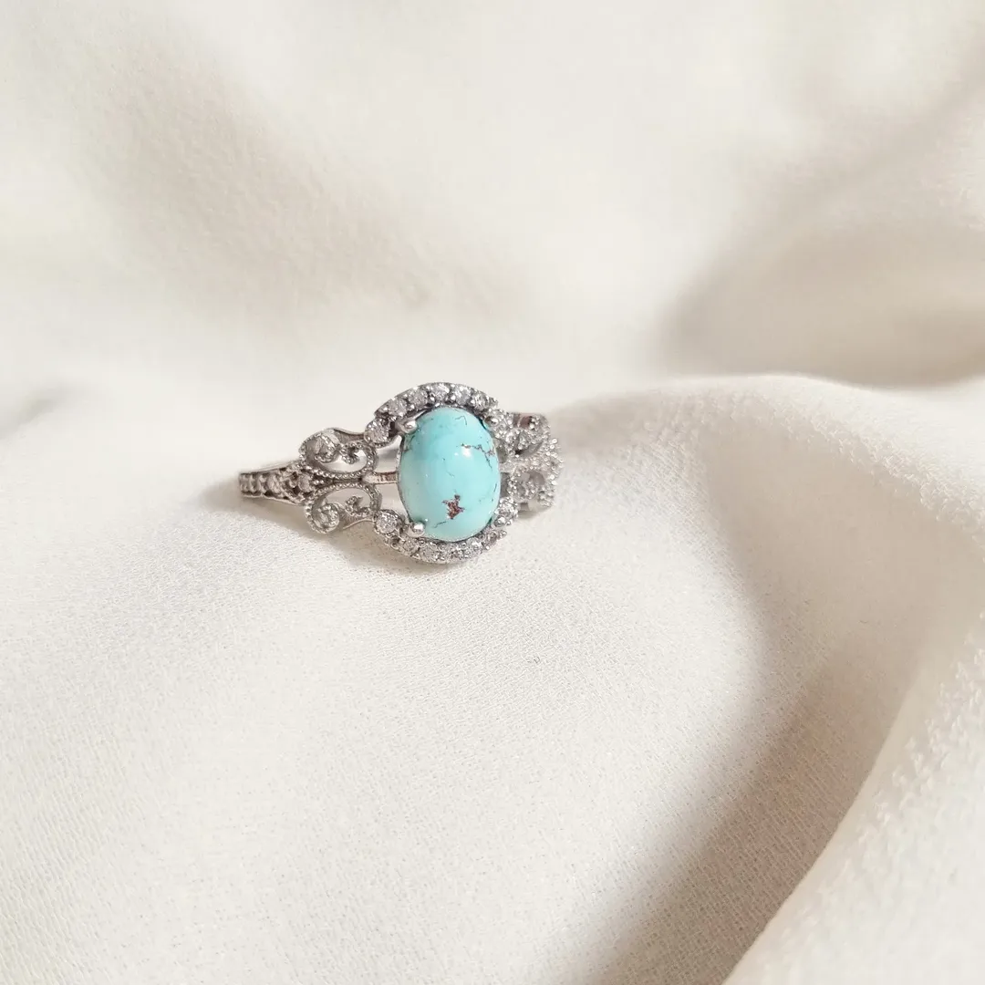 انگشتر نقره زنانه سنگ فیروزه نیشابور اصل آبکاری رادیوم