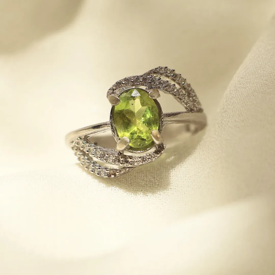 انگشتر نقره عیار ۹۲۵ با آبکاری رادیوم آلمانی نگین سبز