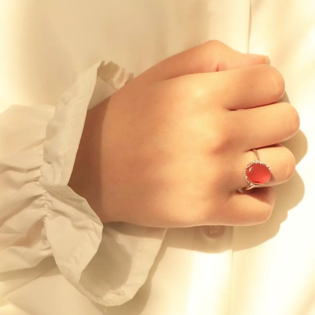 یه انگشتر خیلی رویایی با عقیق یمن پرتقالی رنگ (سنگ طبیعی و اصل) رکاب نقره عیار ۹۲۵ مدل رکاب طرح قلب. از این انگشتر فعلا موجوده ۳ تا که یکیش رگه ی خونی داره.