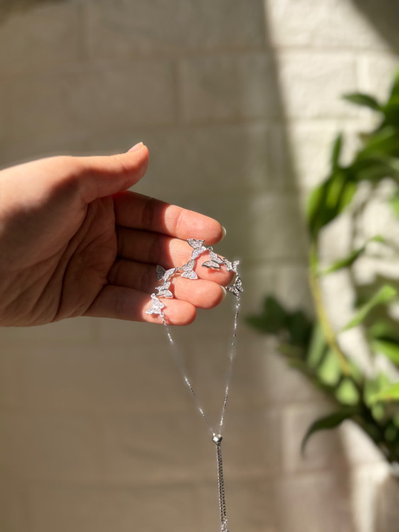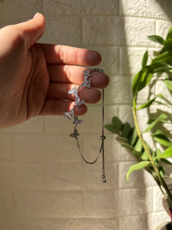 دستبند نقره وارداتی آبکاری طلا سفید پروانه ای