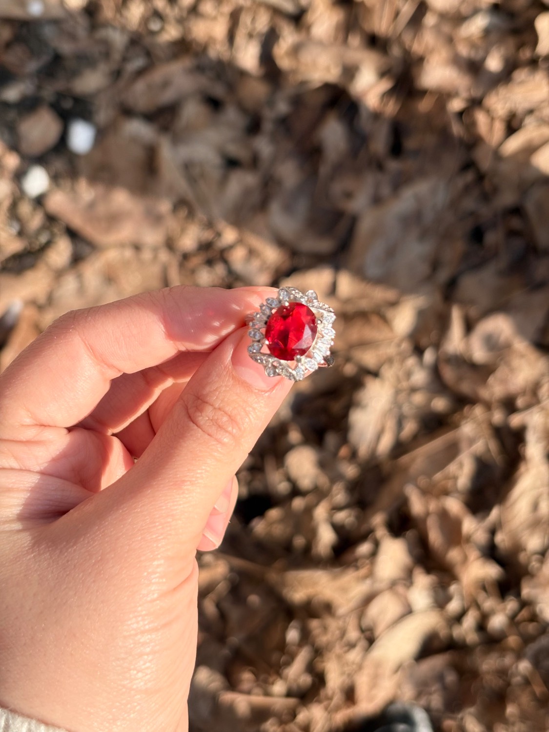 انگشتر نگین سرخ نقره آبکاری رادیوم